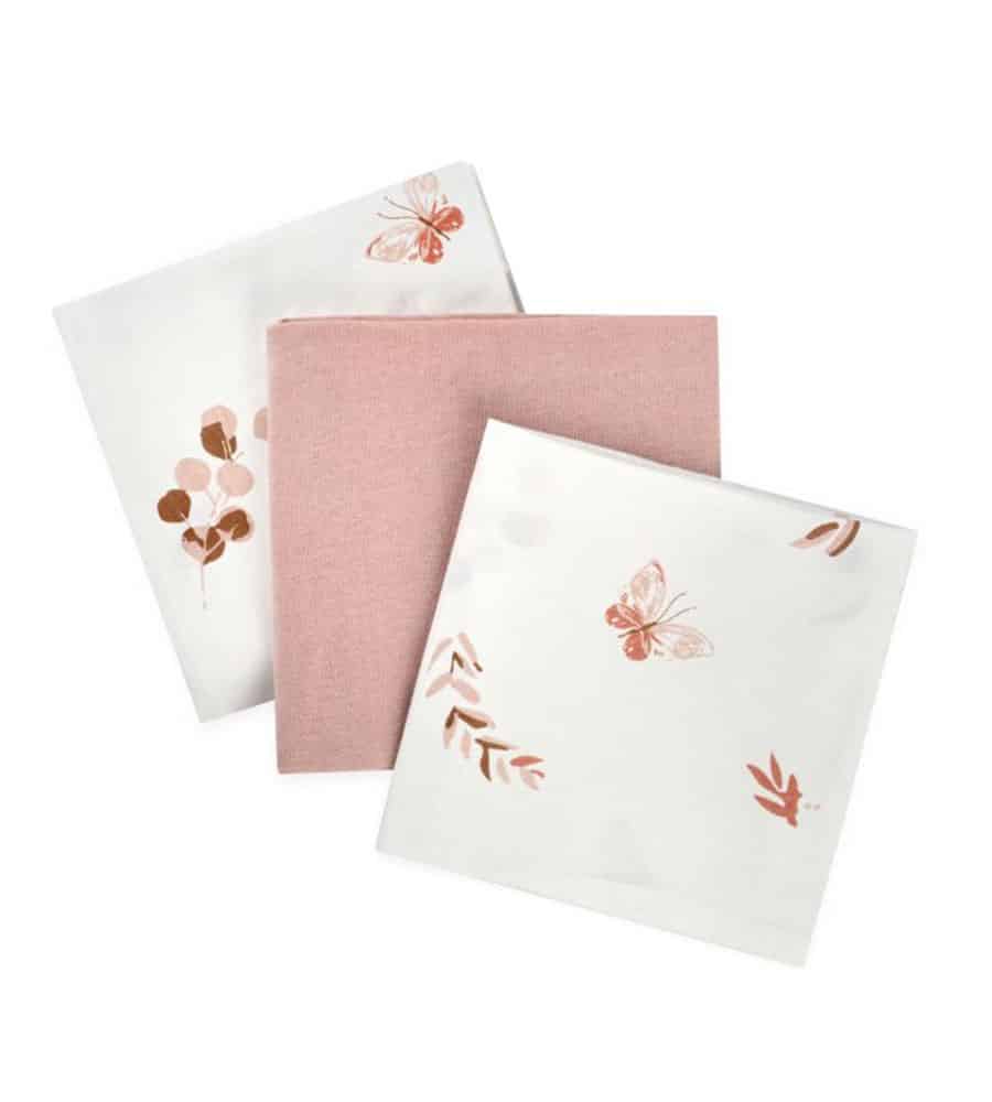 • שלישיית חיתולי טריקו 70*70 פרפרים ורודים