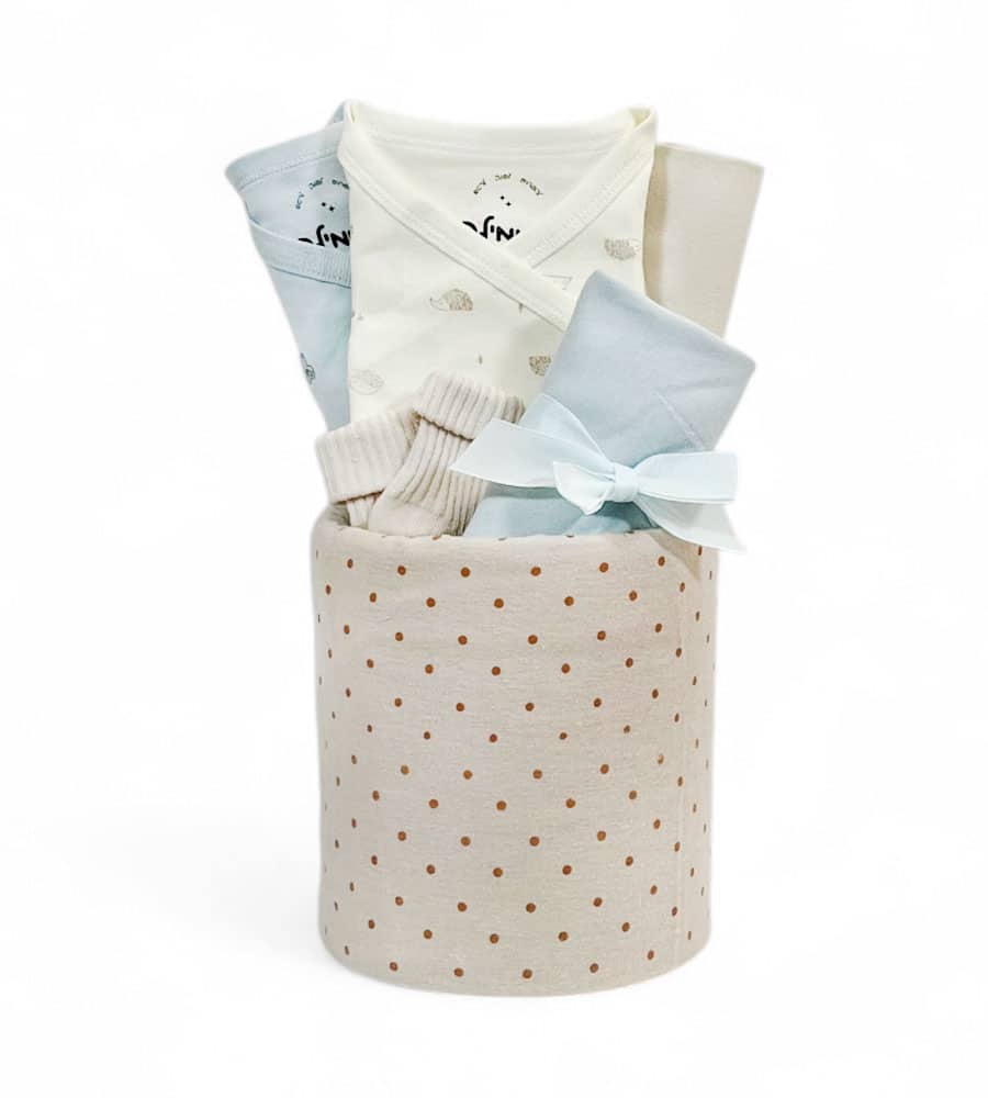 מארז לידה מעוצב בגוונים טבעיים ורכים, הכולל חיתול פלנל בגוון בז׳ עם נקודות, בגד גוף מעטפת ורגלית תואמת, ועוד פריטים נבחרים בקפידה. מתנה מושלמת לרגעים הראשונים, עם המון אהבה, רוך וסטייל נקי. תכולת המארז: